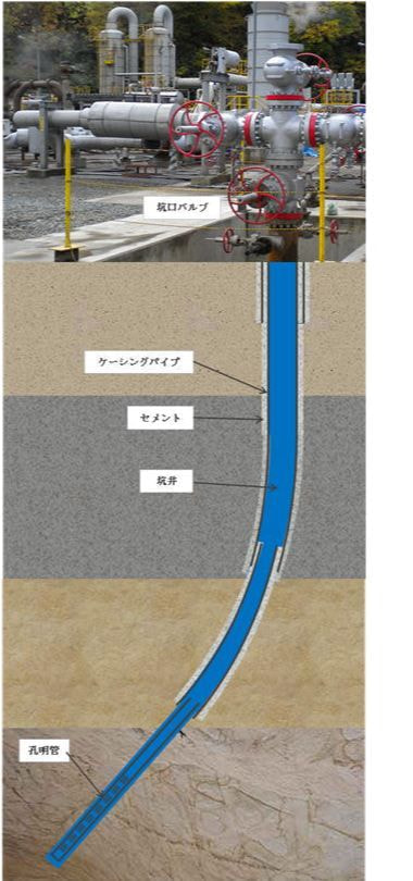 地球温暖化を防止のため、二酸化炭素を地中に貯留する実証試験が行われています。この試験井は、二酸化炭素の注入及び地中での挙動を観測するため、ケーシングプログラム等は特殊な仕上げ形式となっています。