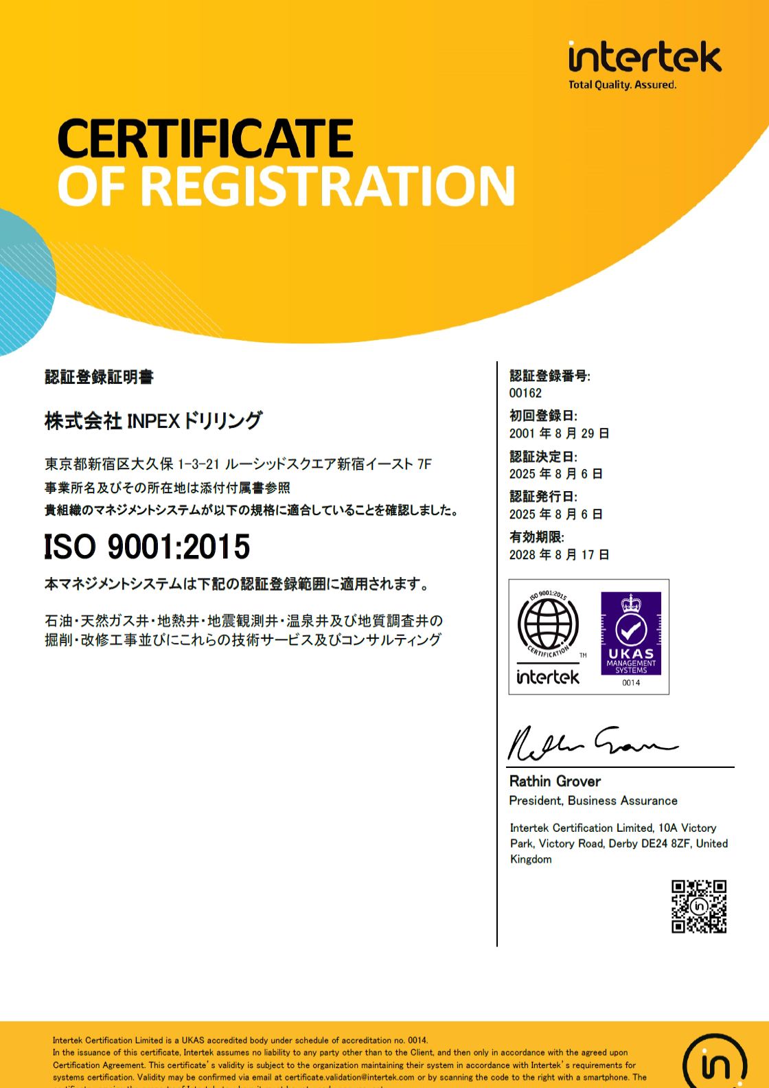 当社は1949年に富鑿井工業株式会社として設立され、1955年に帝国石油株式会社(現、株式会社INPEX)の全額出資の子会社となりました。2012年4月にはINPEXの削井現業部門を統合し、石油・天然ガス井、地熱開発井の掘削を主要業務として、掘削技術サービスを提供しております。